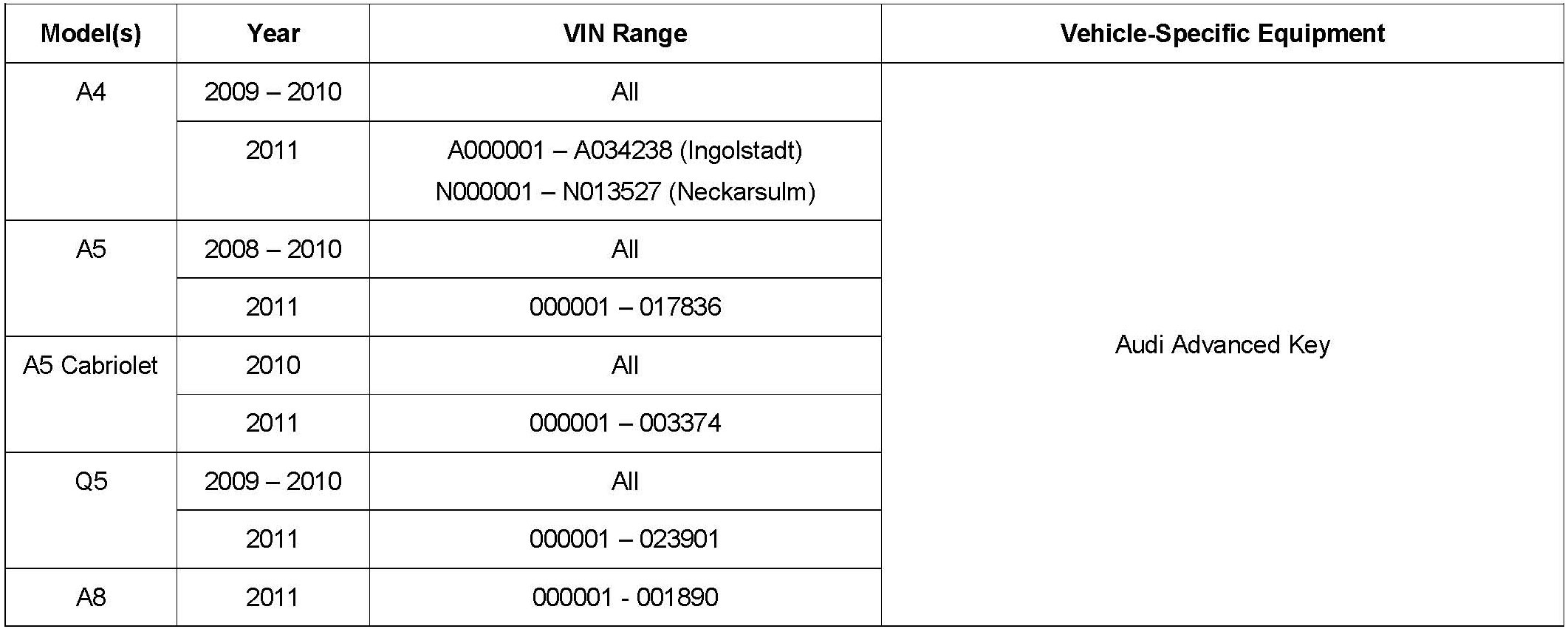 ^ Vehicle doors cannot be locked or unlocked using Advanced key.