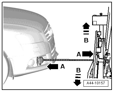 - Now align by sliding it sideways - arrows B - (VAS 6190) so that the laser beam is horizontally centered on the senor lens.