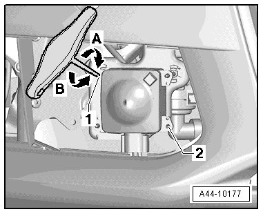 - Turn the (VAS 6190/2) in - direction of arrow A or B - and use the lower screw - 2 - and the upper screw - 1 - for precision adjustment in "Guided Fault Finding".