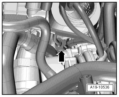- Disconnect the Engine Coolant Temperature (ECT) Sensor (G62) electrical harness connector - arrow -.