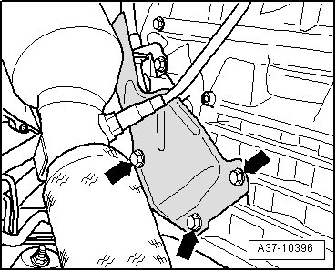 - Remove the heat shield bolts - arrows - and shield for the selector lever cable.