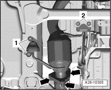 - Remove the bolts - 1, 3 and 4 - from the heat shield.