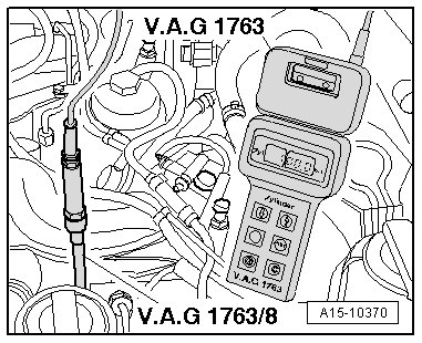 - Install the (V.A.G 1763/8) in place of the glow plugs and connect the (V.A.G 1763).