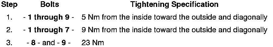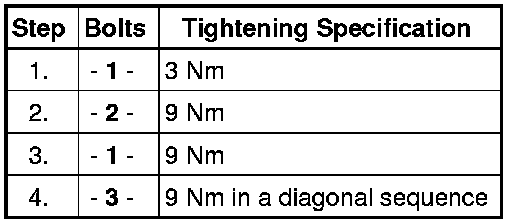 Tighten the bolts in 3 steps according to the tightening sequence: