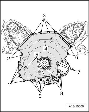 Right Timing Chain Cover, Tightening Specifications and Sequence