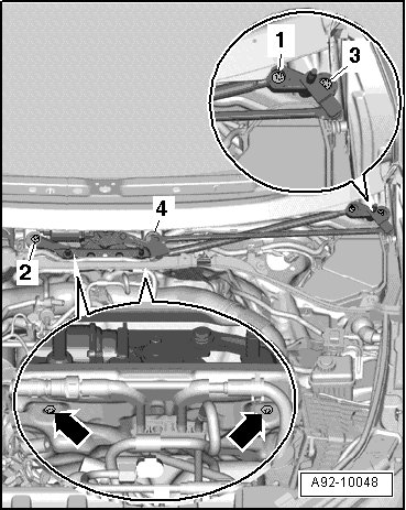 - Remove windshield wiper arm - 1 - and - 3 -, refer to => [ Windshield Wiper Arms ] Windshield Wiper Arms.