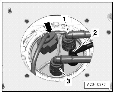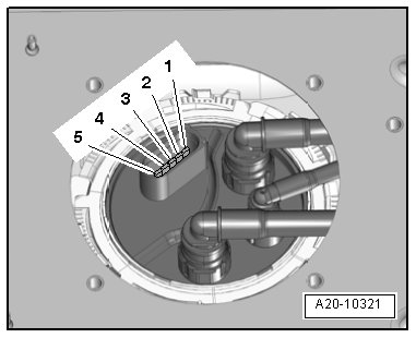 • Tightening specifications, refer to => [ Fuel Level Sensor Assembly Overview ] Fuel Level Sensor Assembly Overview, => [ Locking Flange Cover - Tightening