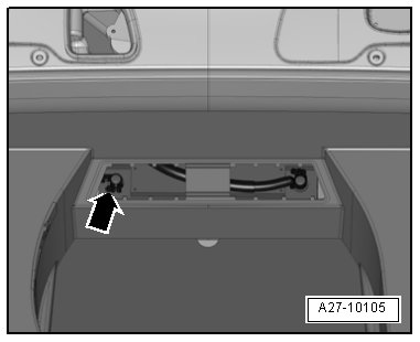 - With the ignition switched off, disconnect the battery ground (GND) - arrow -.