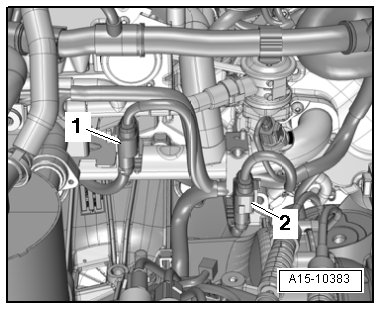 - Disconnect the fuel injector electrical connectors - 1 - and - 2 -.