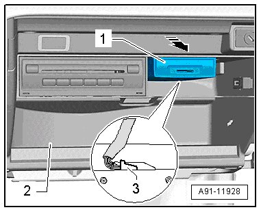 - Disconnect the connectors - 3 - from the chip card reader control module (J676) - 1 -.