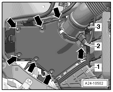 - Open the air guide hose clamp - 3 - and remove the hose from the Mass Air Flow (MAF) Sensor (G70).