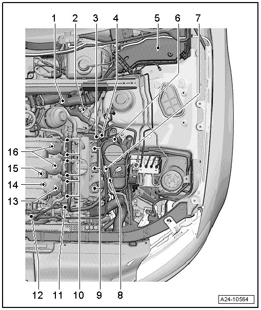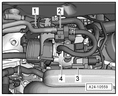 3 - Climatronic Refrigerant Shut-Off Valve -N422- (a shut-off valve is not installed on vehicles with an auxiliary heater and it is discontinued as a running change in model year 2008)