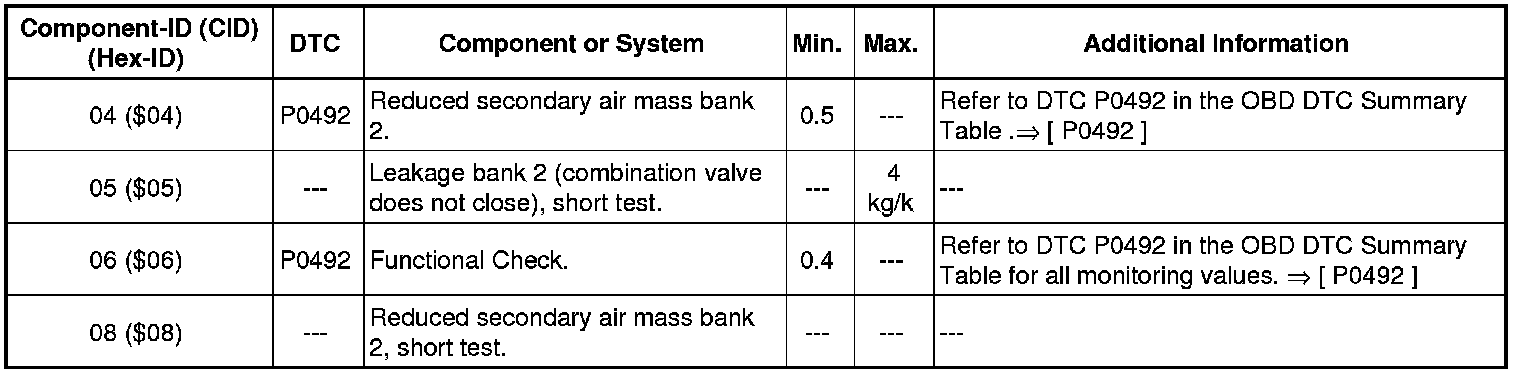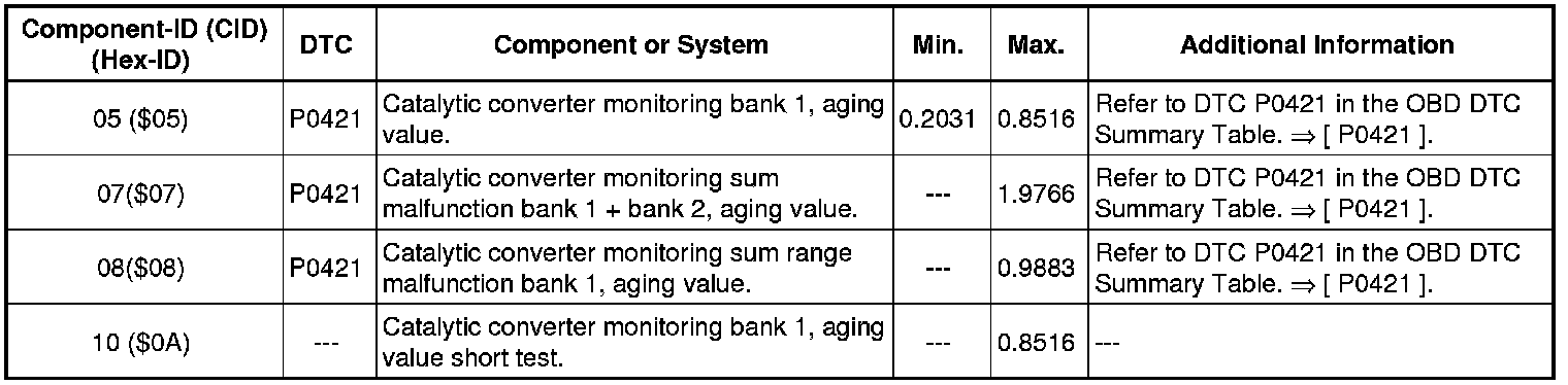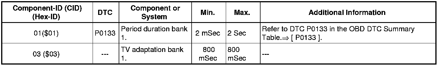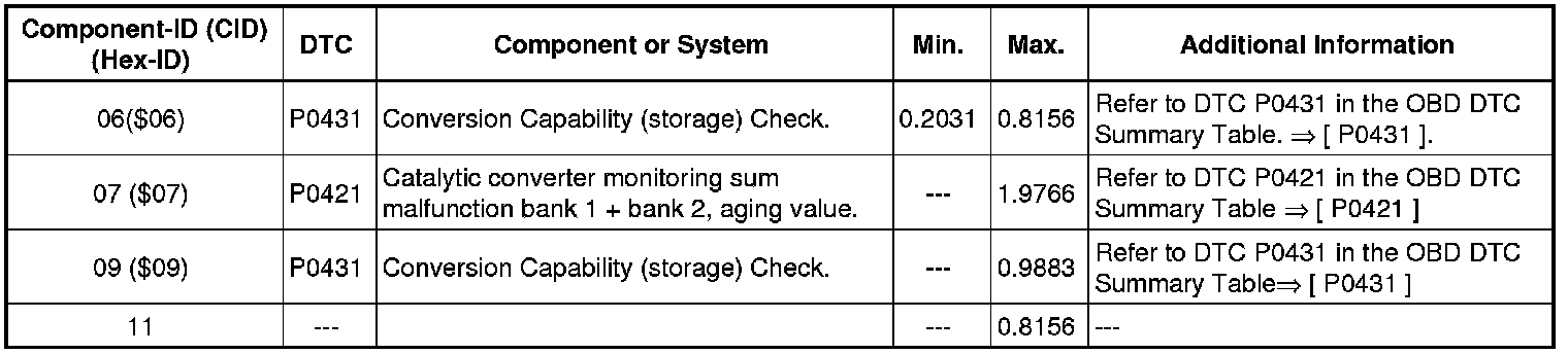 - If any of components or systems fail to meet the specified values, refer to => [ Diagnostic Mode 03 - Read DTC Memory ] Diagnostic Mode 03 - Read DTC Memory.
