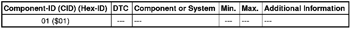 The following table is a numerical list of all"Test-IDs" or "Hex-IDs" that may be selected.
