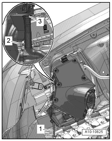 - Remove the air filter housing and disconnect the electrical connector - 2 - on the rear side at the intake air switch-over valve (N335).
