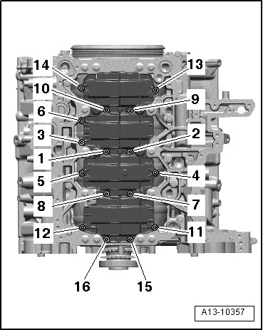 - Tighten baffle plate bolts to 9 Nm in - 1 to 16 - sequence.