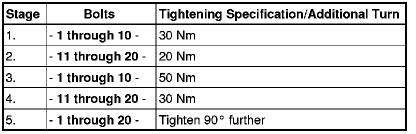 - Tighten the guide frame to cylinder block sealing surface bolts, - highlighted in dark -, in a diagonal sequence to 9 Nm.