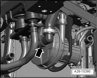 - Remove air guide hose from secondary air injection pump - arrow -.