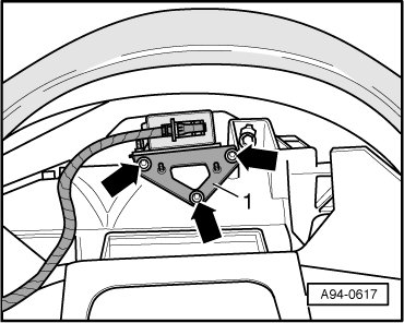 - Remove bolts - arrows - and remove bracket - 1 - for headlamp range control module (J431) from instrument panel support.