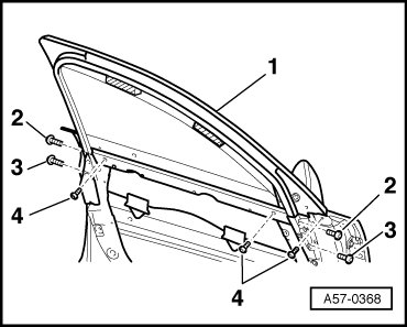 - When removing assembly carrier - 2 - or door window, cover - 1 - must be pulled out.