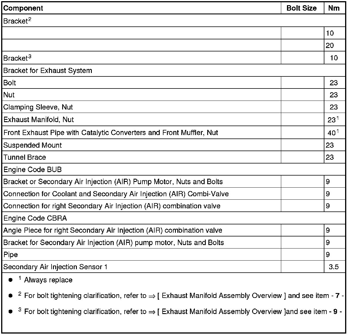 Fastener Tightening Specifications