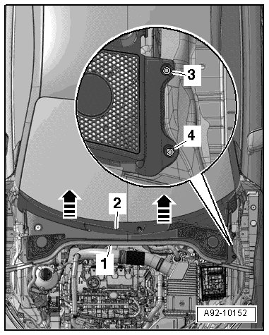 - Carefully remove the plenum chamber cover - 2 - starting at the edge of the glass vertically from the windshield - arrows B -.