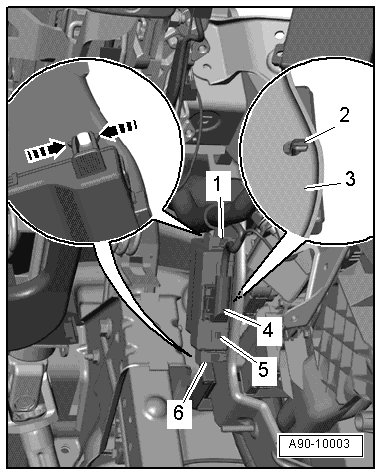 - Disconnect electrical connector - 4 - and remove Data Bus On Board Diagnostic Interface (J533) - item 5 -.
