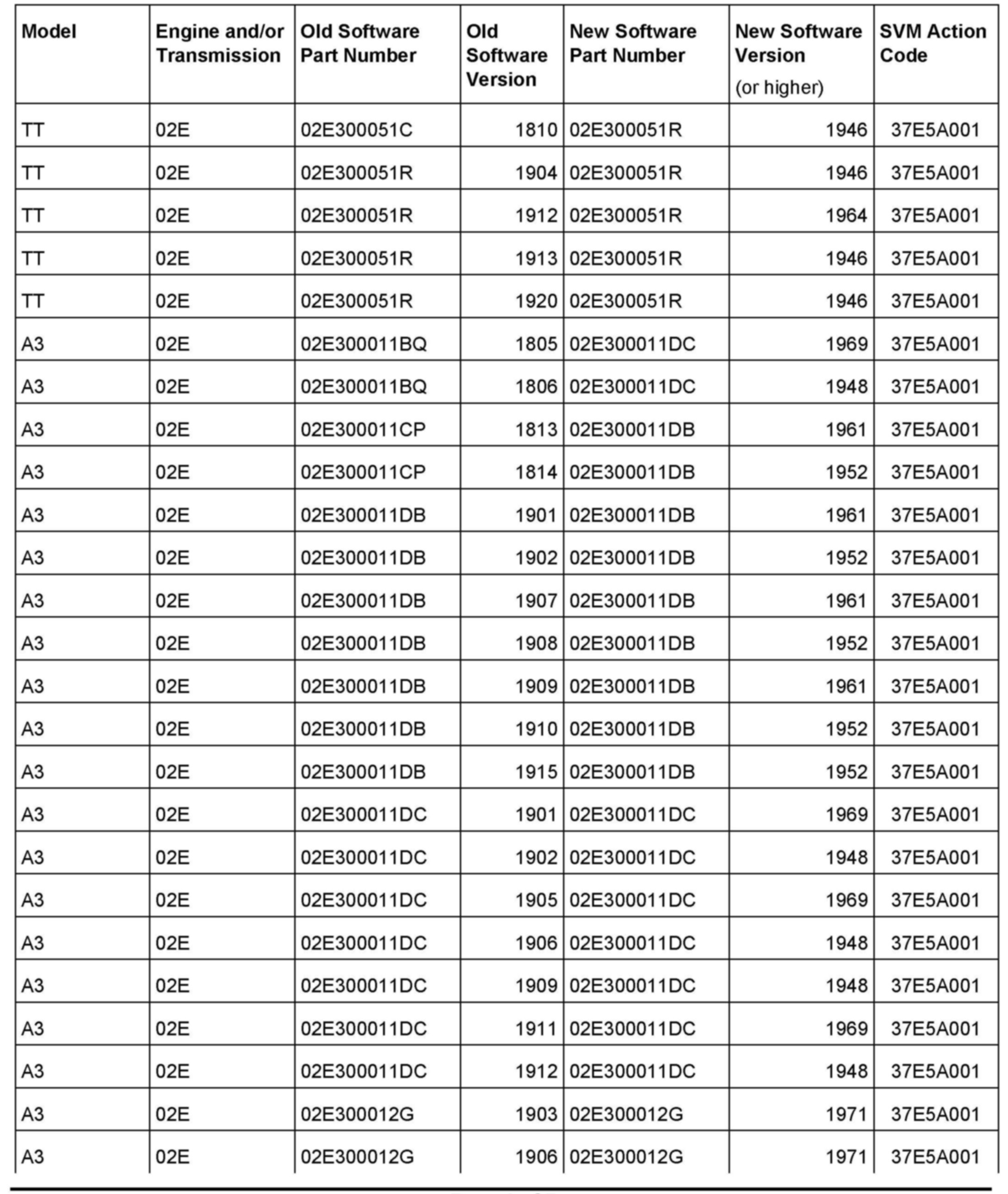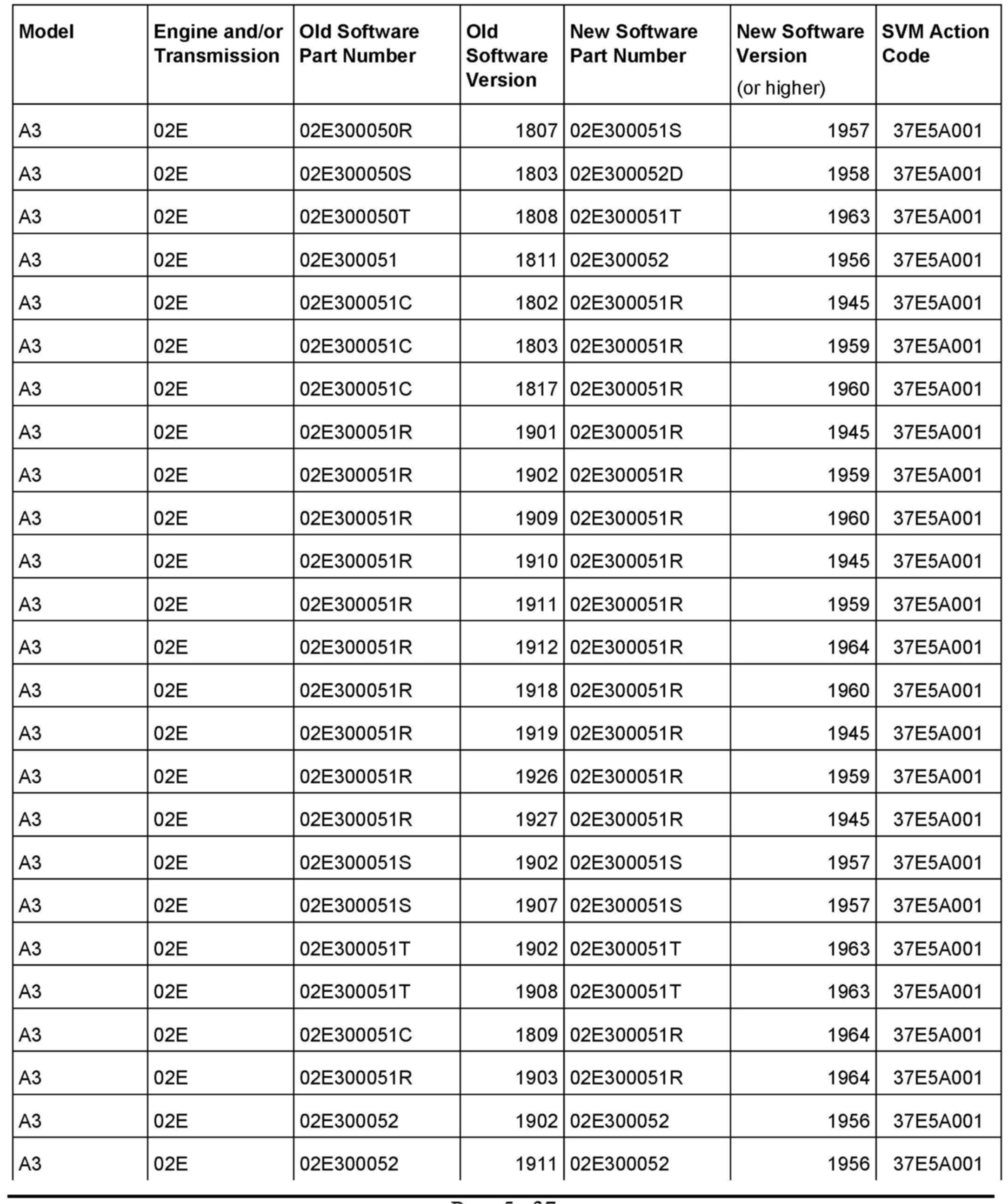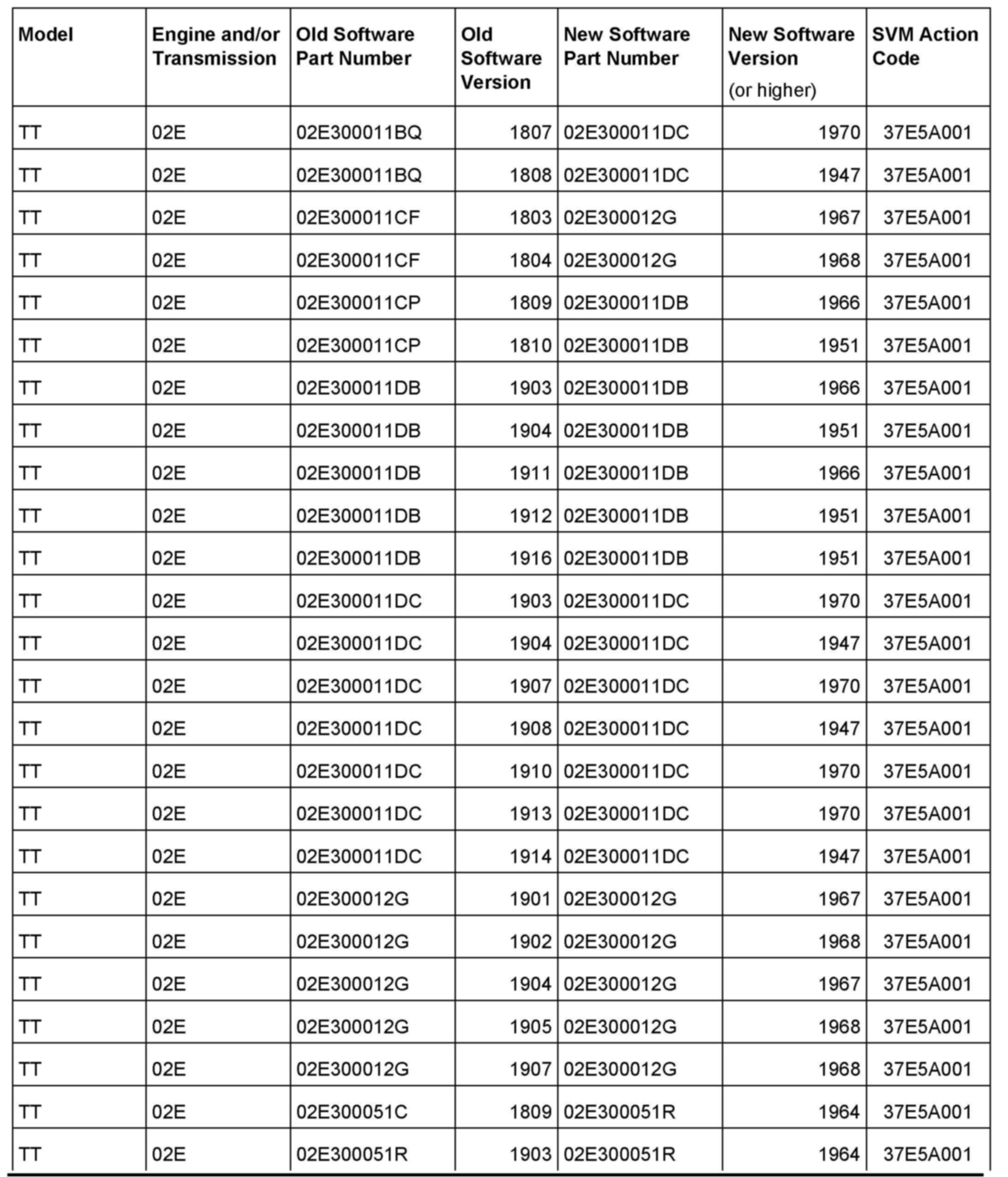 3. Update the transmission control module using the SVM action code as listed in the table above if necessary.