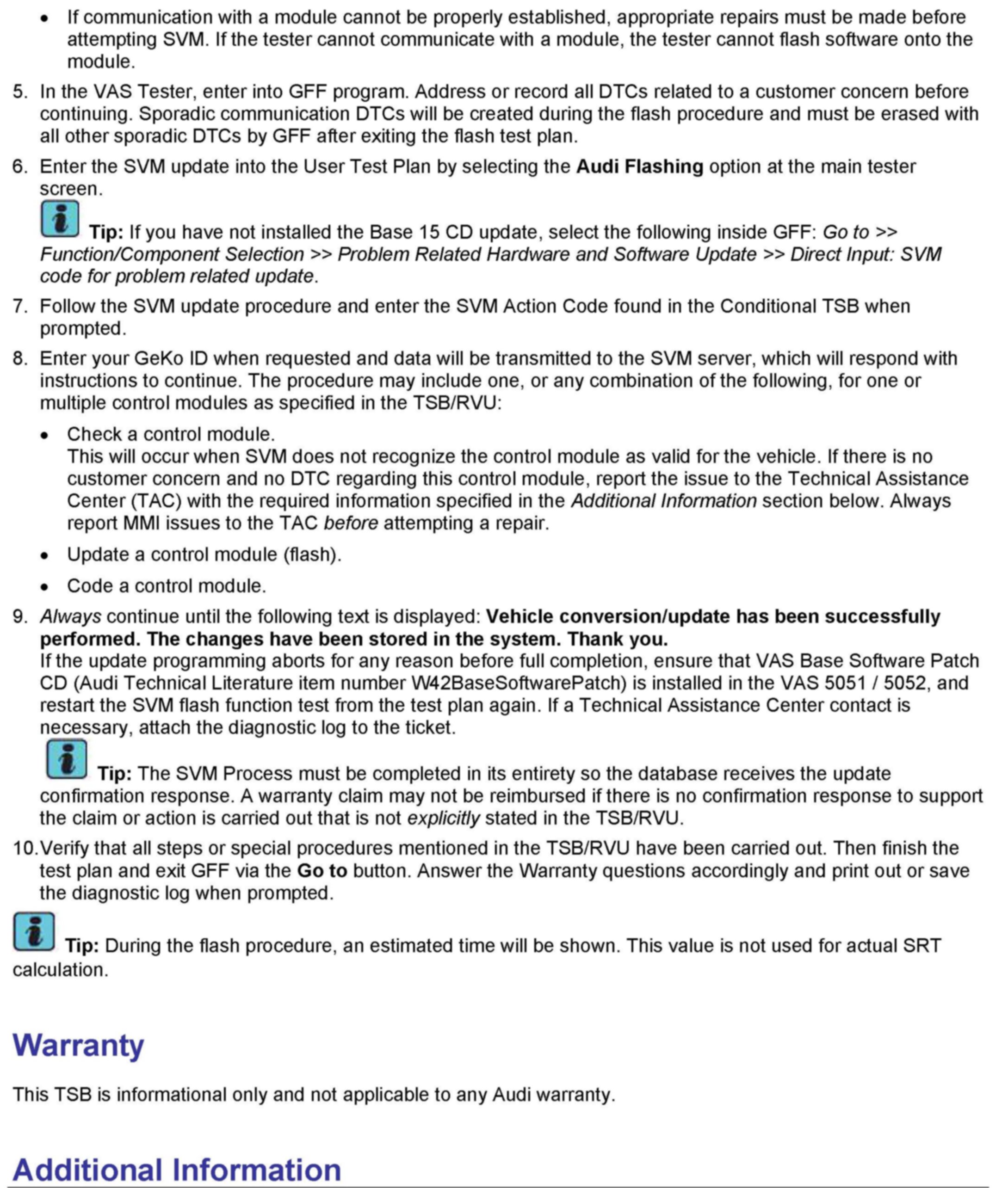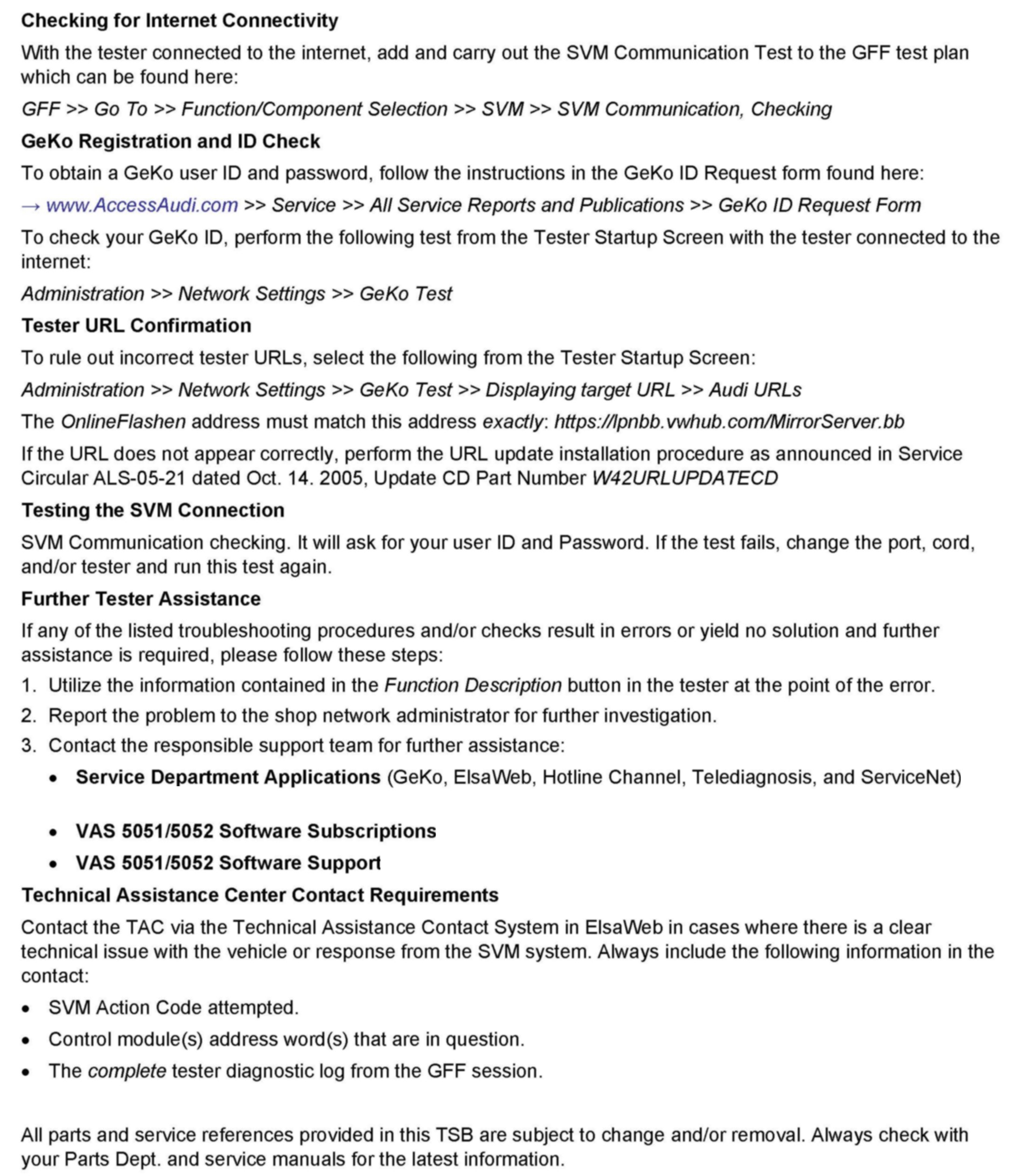 2. Follow all instructions in the attached TSB 2011732 00 Software Version Management (SVM), operating instructions.
