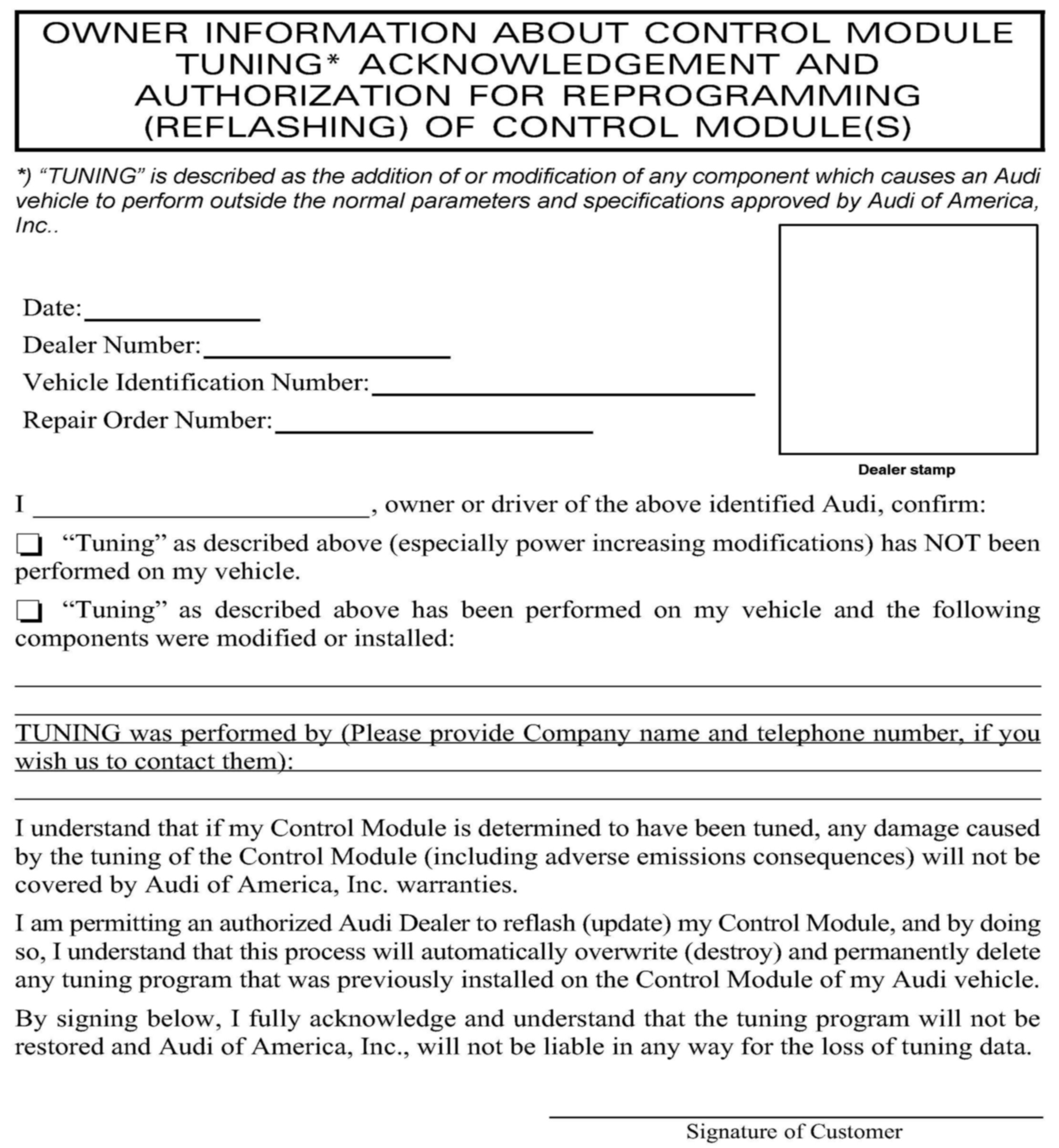 ^ Procedure must be performed on applicable vehicles in dealer inventory prior to sale.