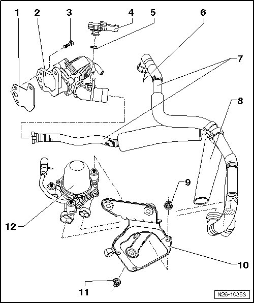 • Removing and installing, refer to => [ Secondary Air Injection Solenoid Valve (N112) ] Service and Repair