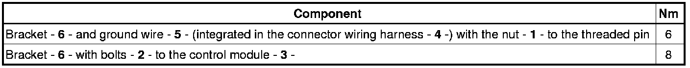 - Tighten the bracket - 4 - with the bolts - 5 - to the control module - 8 - to 8 Nm.