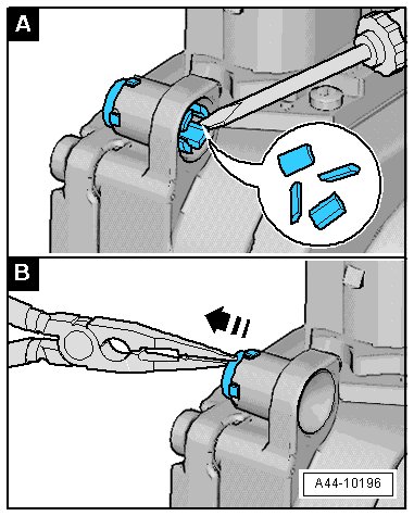 - Insert the new clip into the hole for the housing from the left side and push it in by hand until it audibly engages.