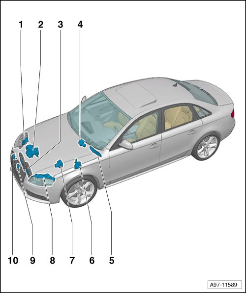 • Component Location and connectors for models with right-hand drive (with -T60- and -T94- ): => [ ] Locations