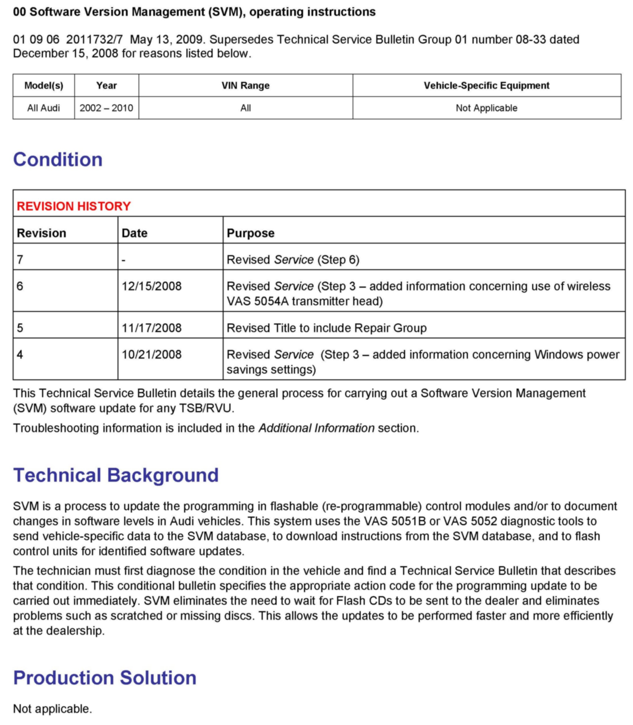 ^ TSB 2011732 00 Software Version Management (SVM), operating instructions.