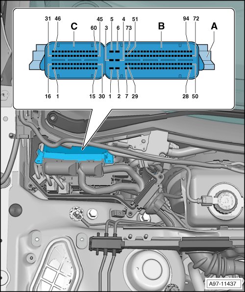 Component Location Engine Control Module (ECM) -J623- for models with left-hand drive: