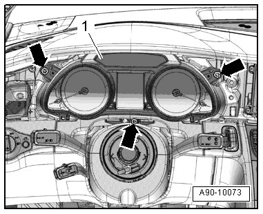 - Pull the instrument cluster - 1 - out until it lies on the steering wheel.