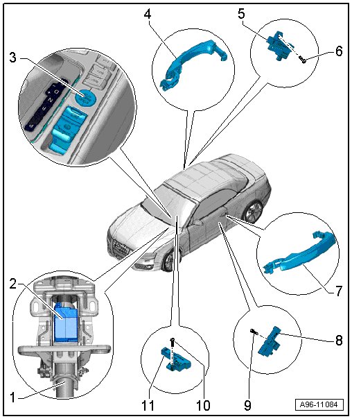 • Overview, refer to => [ Exterior Door Handle and Keyless Access Authorization Overview ] Exterior Door Handle and Keyless Access Authorization Overview.