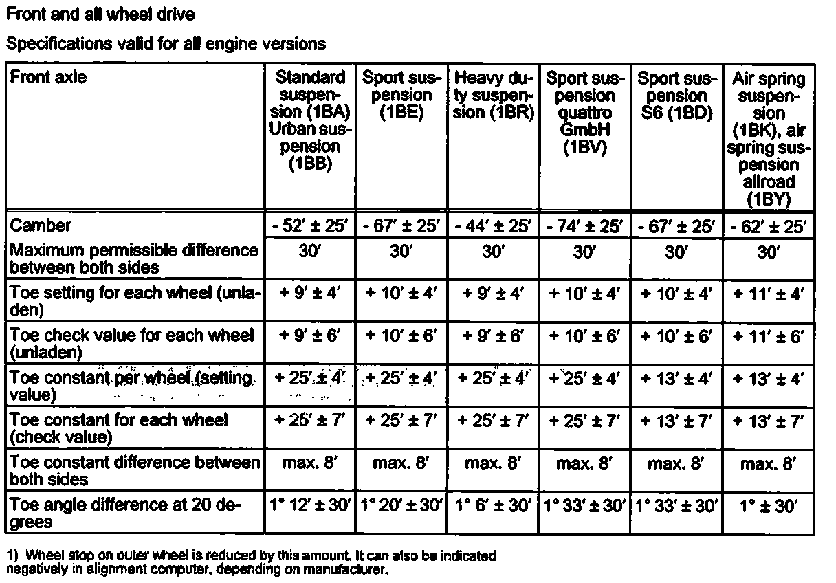 Wheel Alignment Specifications