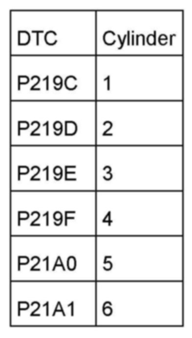 ^ List of DTCs to correlating cylinders
