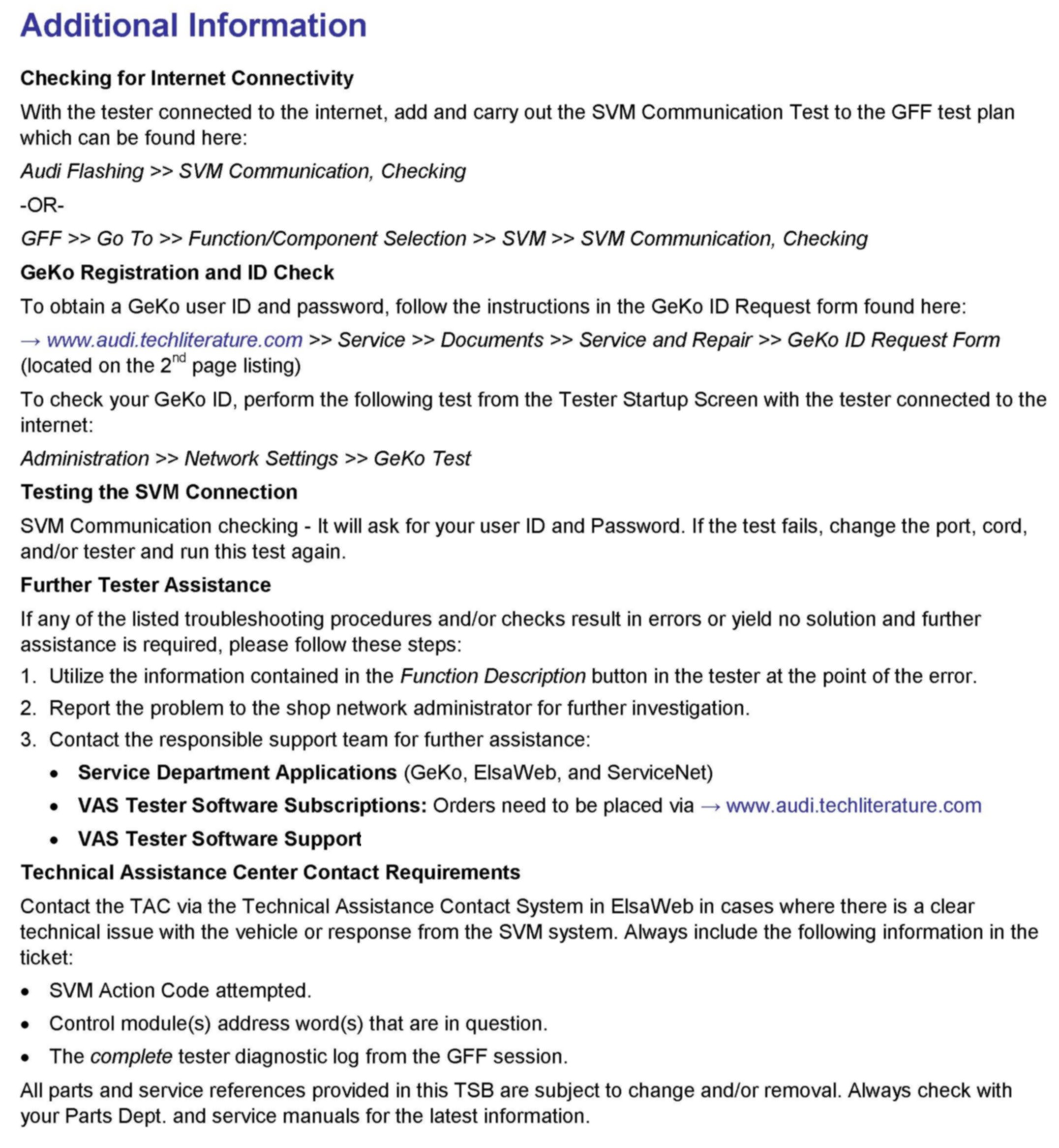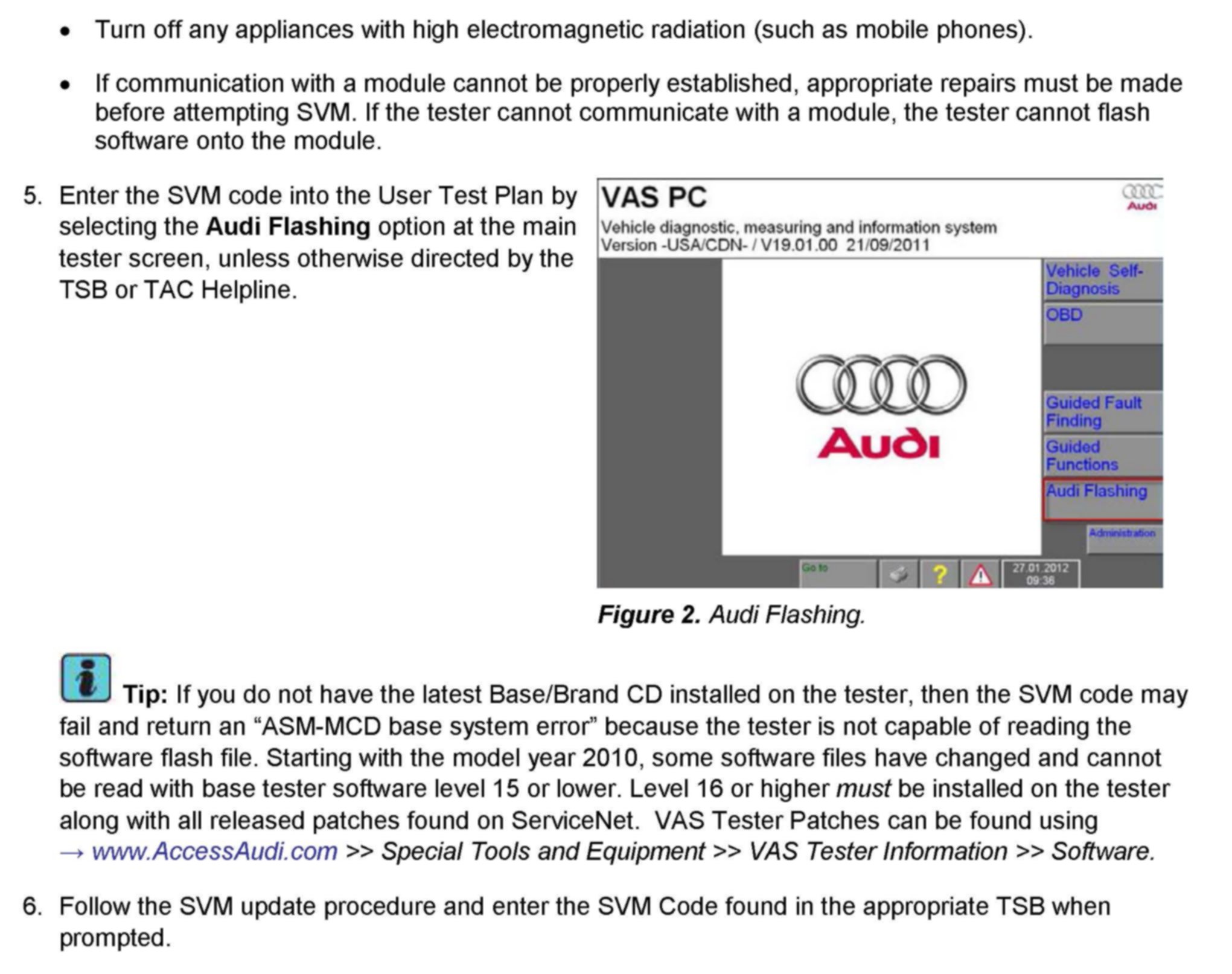 1. Follow all instructions in the attached TSB 2011732 00 Software Version Management (SVM), operating instructions.