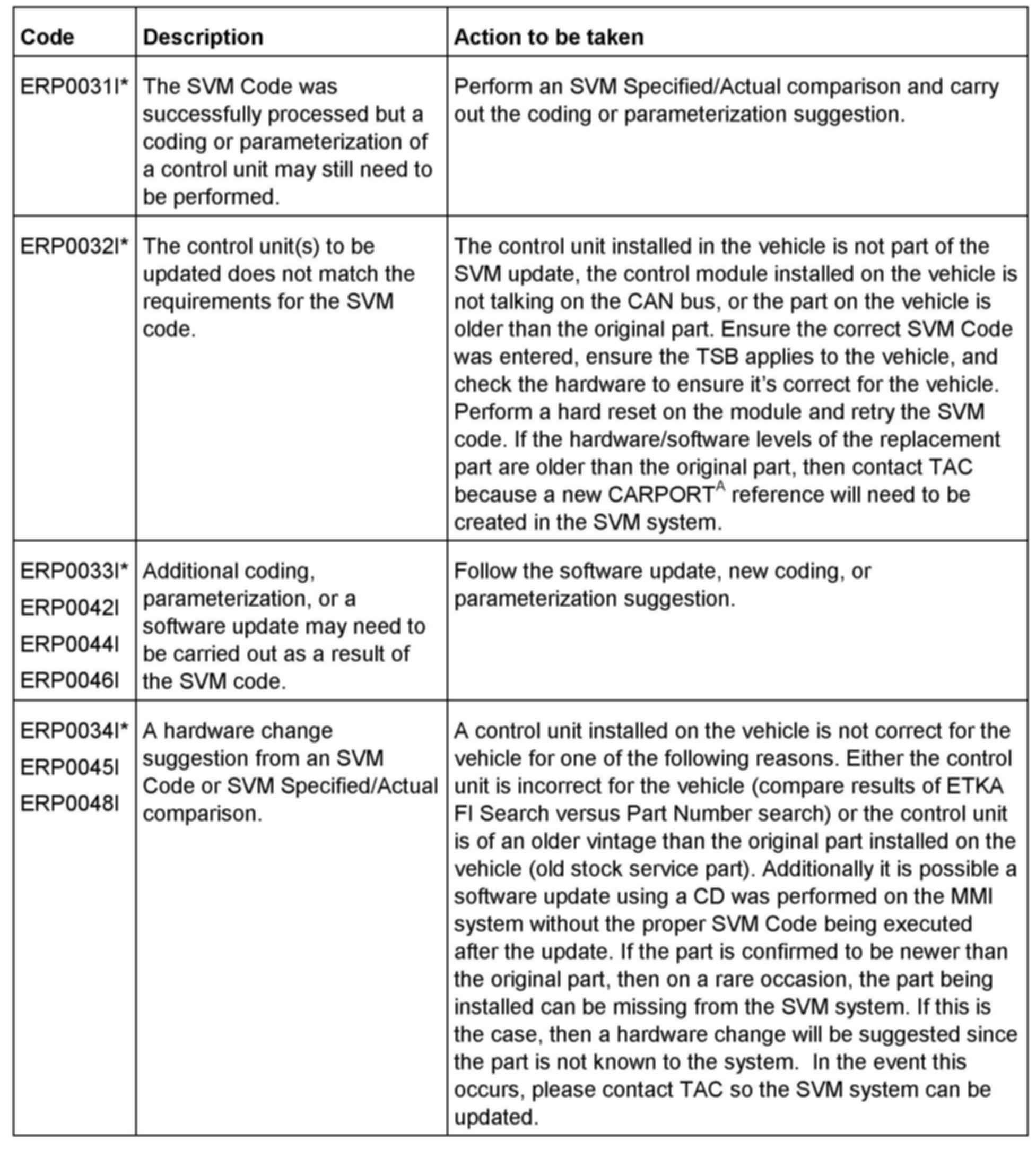 2. Update the ECM (J285) using the SVM action code as listed in the table above if necessary.