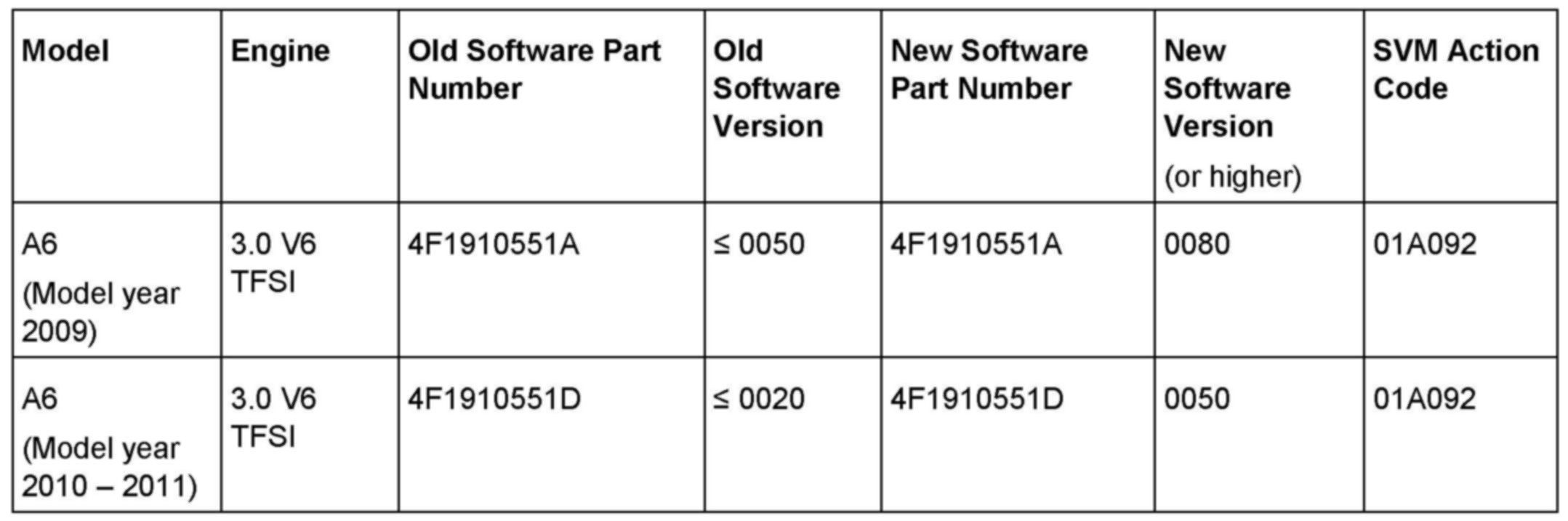 2. Update the ECM using the SVM action code as listed in the table above if necessary.