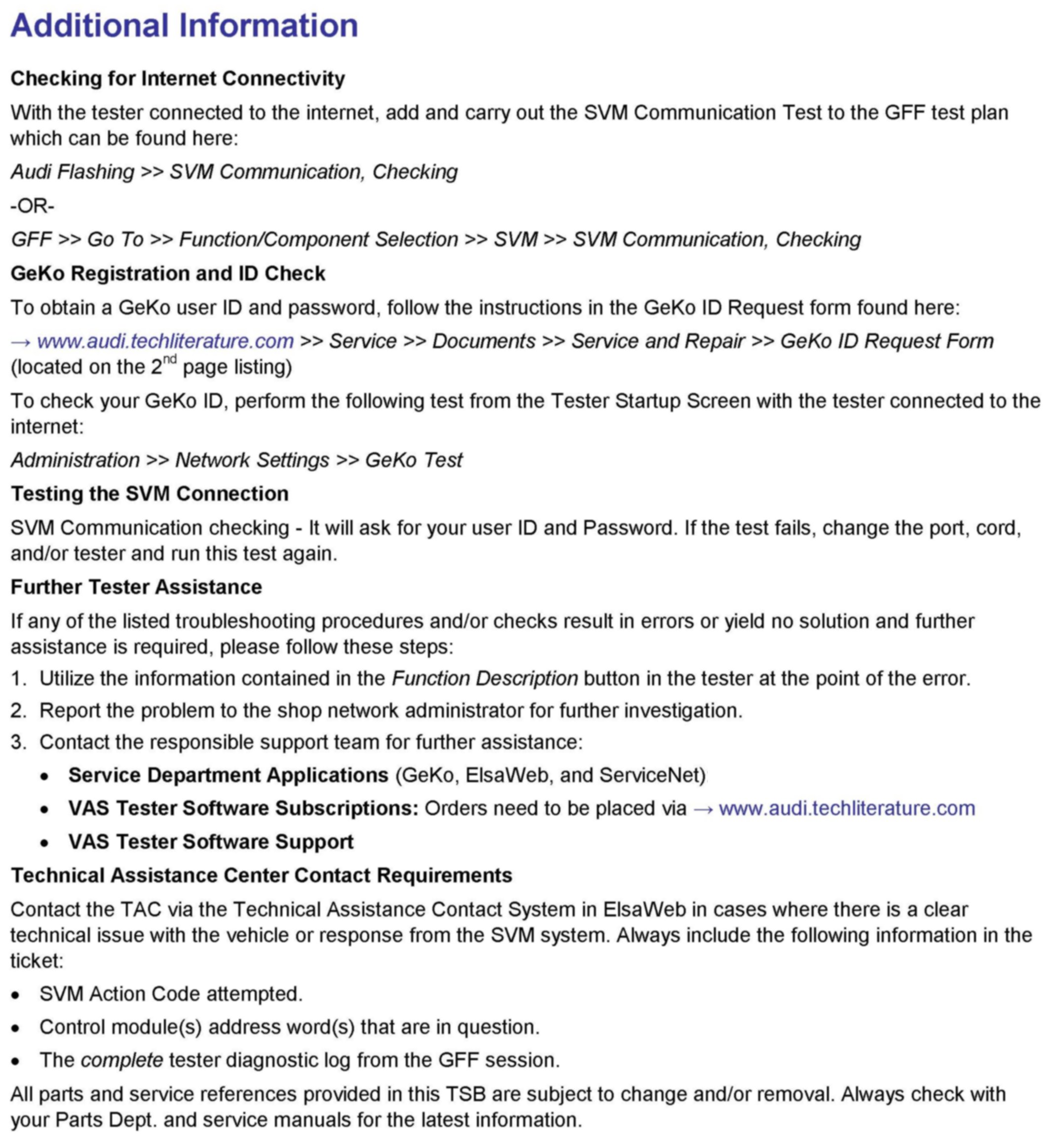 1. Follow all instructions in the attached TSB 2011732 00 Software Version Management (SVM), operating instructions.