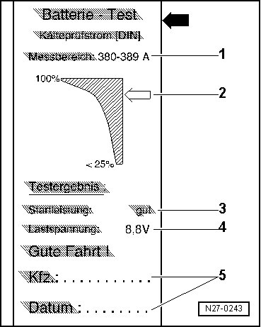 • Using the battery tester (VAS 5097A), refer to the operating instructions.