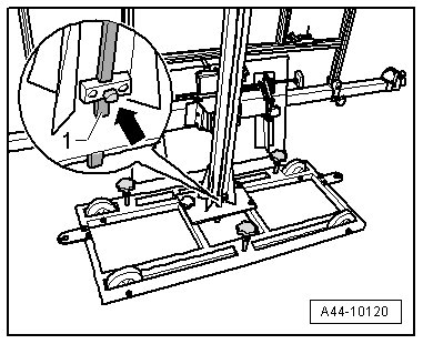 - Loosen the bolt - arrow - and place the measuring bar - 1 - on the floor.