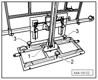 - Secure the (VAS 6430) by tightening the bolts - 2 and 3 - slightly. (This prevents the (VAS 6430) from rolling away.)