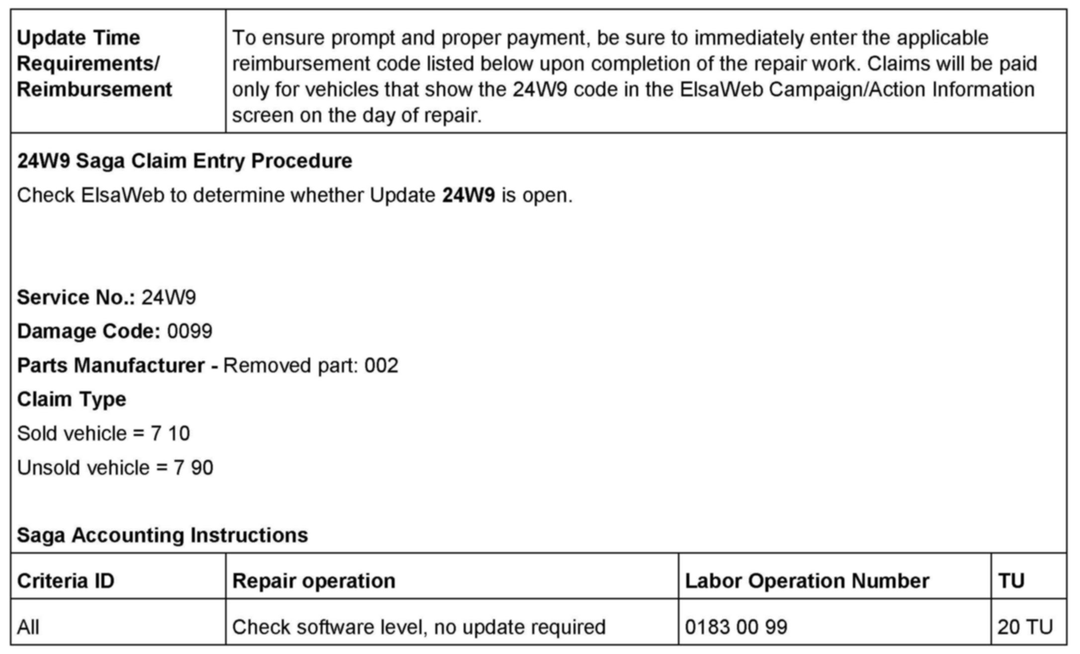 ^ Procedure is valid only for vehicles that show the 24W9 code in the ElsaWeb Campaign/Action Information screen on the day of repair.