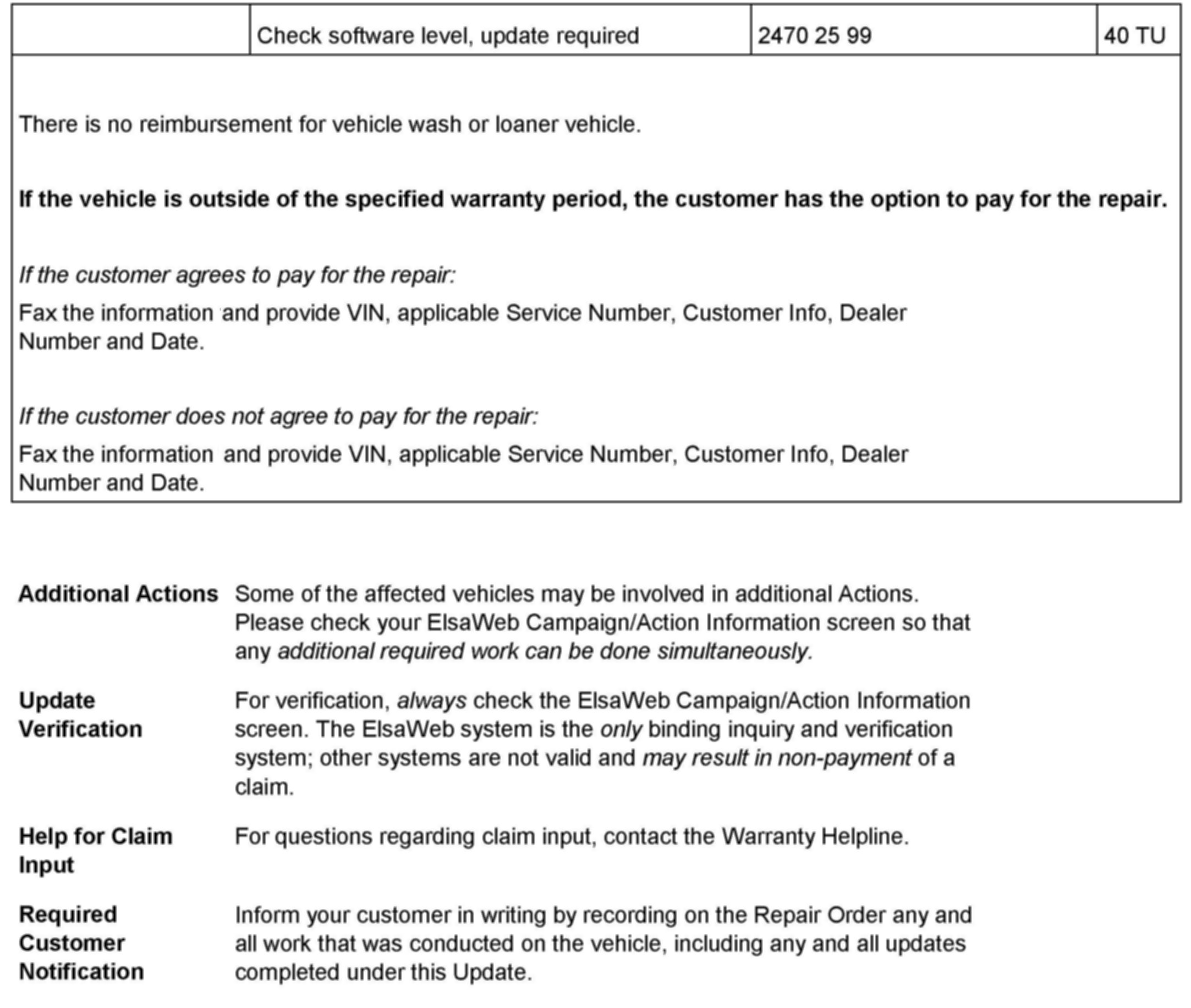 ^ Procedure must be performed within the allotted time frame stated in this Technical Service Bulletin.