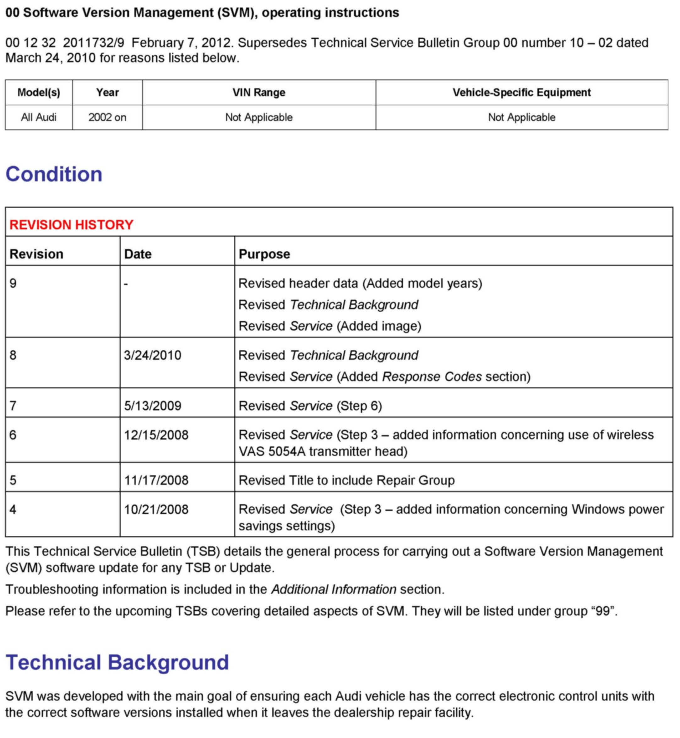 ^ TSB 2011732 00 Software Version Management (SVM), operating instructions.